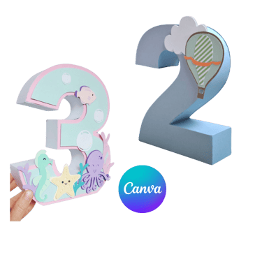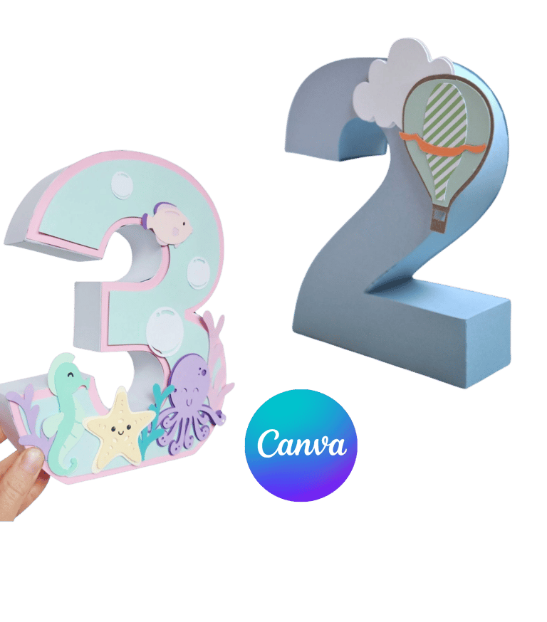 Recibirás moldes de números en formato 3D listos para editar en Canva.